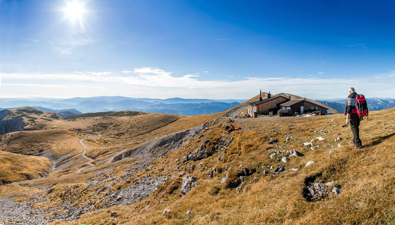 Miután megpihentünk a Fischerhüttében az ún. Schauersteinen keresztül, a zöld, majd a sárga jelzésen leereszkedünk az Edelweißhüttéhez. Onnan a schneebergi ülőlifttel utazhatunk le a völgybe vagy a sárga jelzésen gyalog mehetünk az alsó állomásig.