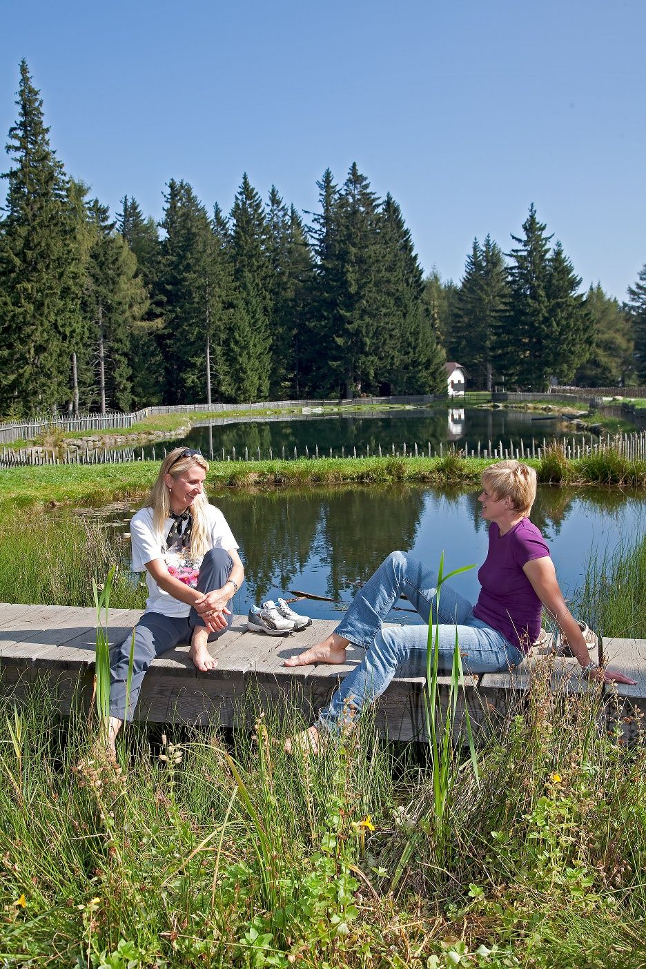 vízellátásról és a víztárolásról a múltban és a jelenben. Az erdőben található kis bemutató forrásnál megnézheti, hogyan szűrik meg a vizet egy csövön keresztül, amint az a kövek között kibukkan, majd egy kavicságyon keresztül folyik, és ismét megszűrik, mielőtt lecsorogna az ivóvíztárolóba. A Mönichkirchner Schwaig lankás rétjein végül elérjük a Wechselquelle forrás által táplált, ivóvíz minőségű vízzel ellátott tavat, amelyet télen oltóvízként és a pálya hóágyúzására használnak. A fürdőtó melletti biotóp rengeteg állatnak ad otthont, amelyeket egy bemutatótábla ismertet. A Grenzbacherl Niederösterreich - Steiermarkban aztán jó hely a pihenésre és az alpesi hütétekben való frissítésre, mielőtt visszaindulnánk a faluba. megismerkedhetünk a víz körforgásával az esőtől a forrás keletkezéséig, a patakig és a tóig.