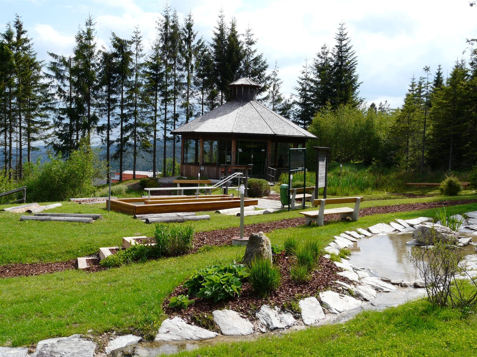 A római kori Neptun vízisten, a Szent Margartehen homokkőből és a Wechselgebit szikláiból készült szobor köszönti a kirándulót. Egy tisztáson, ahonnan széles kilátás nyílik a púpos világra, mezítláb tapogathatja a vizet és a különböző erdei talajokat, mint például kavics, kavicsok vagy kövek, a Kneipp- és érzelmi gyalogösvényen. Egy üvegépületben, a Salaeriumban az erdő csodálatos illata és a fodrozódó víz lágy hangja veszi körül . Az ecsetfa fölött lecsorgó sós víz finom sórészecskékkel gazdagítja a levegőt, amelyek belélegezve gyógyító hatással vannak a légzőszervi megbetegedésekre. A könnyű hangulatok nyugtató hatást biztosítanak. Itt egyszerűen kifújhatja a levegőt, hagyhatja, hogy az elméje elkalandozzon és ellazuljon. A magaslati tartálynál érdekes információkat szerezhet és kérdéseket tehet fel a