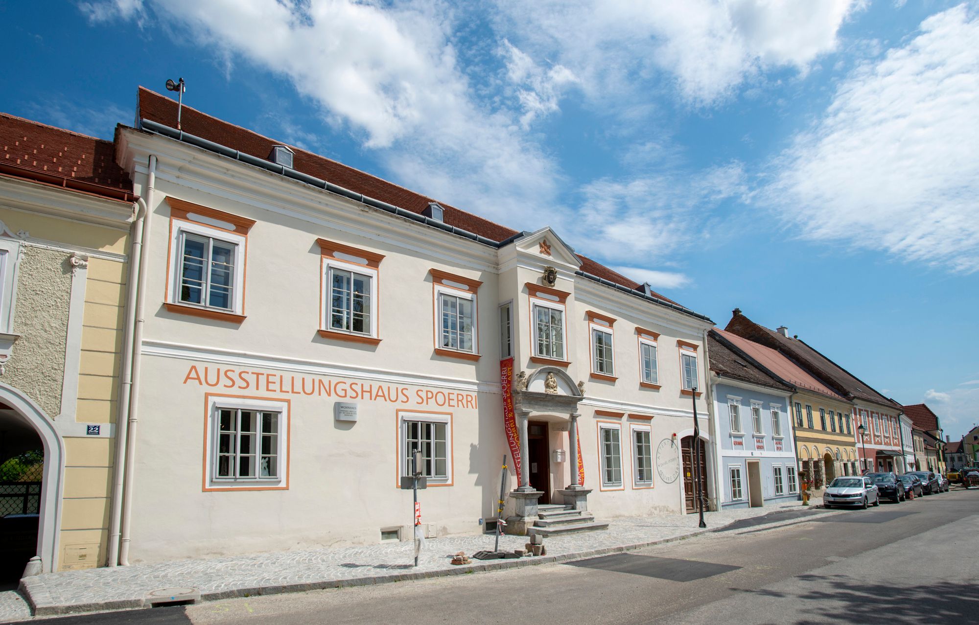 A Spoerri kiállítási központ Hadersdorf főterének közepén található, amelynek házai műemlékvédelem alatt állnak, az úgynevezett "Hohenfurti ház" a 16. század végéről és a 17. század elejéről. Nevét a Hohenfurti Apátságról kapta, amely eredetileg az ingatlan tulajdonosa volt, és valószínűleg közigazgatási épületként és tejüzemként használta. Miután Daniel Spoerri 2008-ban megvásárolta a házat, a helyiségeket kiállítási központ céljára alakíttatta át. A rendszeres látogatókat mindig lenyűgözi a főépület nyugalma és meghittsége a tágas udvarral és különösen a pajta mögötti kert. Daniel Spoerri műveiből évente változó kiállítások kerülnek bemutatásra, amelyek párbeszédet folytatnak a művészbarátok munkáival.