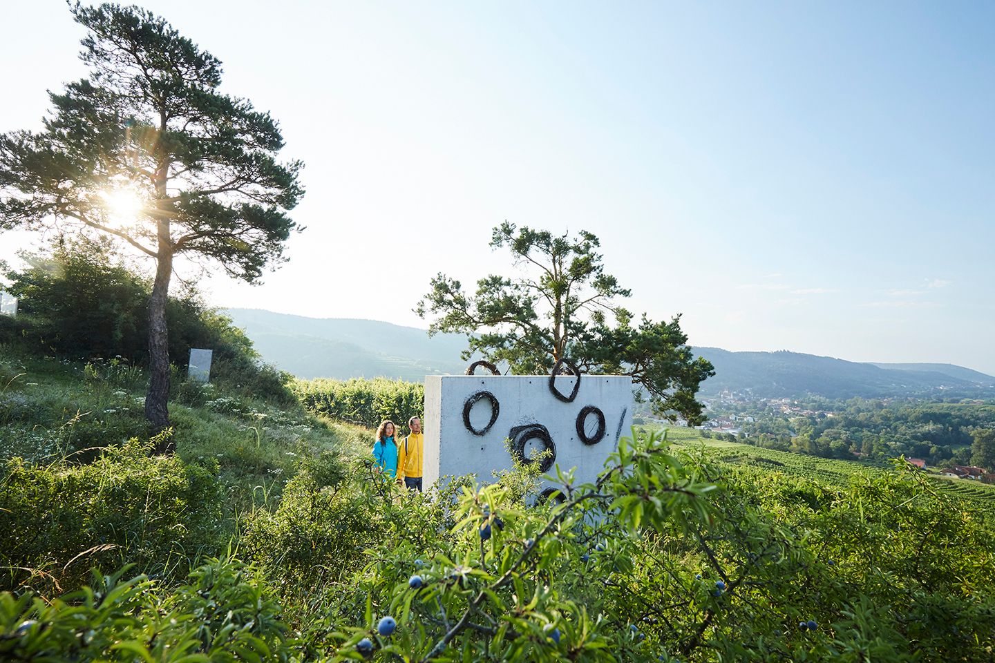 Néhány méterrel feljebb, a Kalvarienhegyen a sétálók két további művészeti projektre bukkannak, amelyek a Kunst im öffentlichen Raum Niederösterreich és a Weltklasse együttműködésében jöttek létre! Kunst & Wein, Kunstwege im Kamptal egyesület együttműködésével jött létre. Norbert Maringer "Sitzplatzskulptur" című alkotása már 2009-ben megnyílt, majd négy évvel később Herbert Golser "Mondrohr" című alkotása. Mindhárom alkotásban közös a kultúrtörténet intenzív vizsgálata és a környező táj szépsége iránti rajongás.