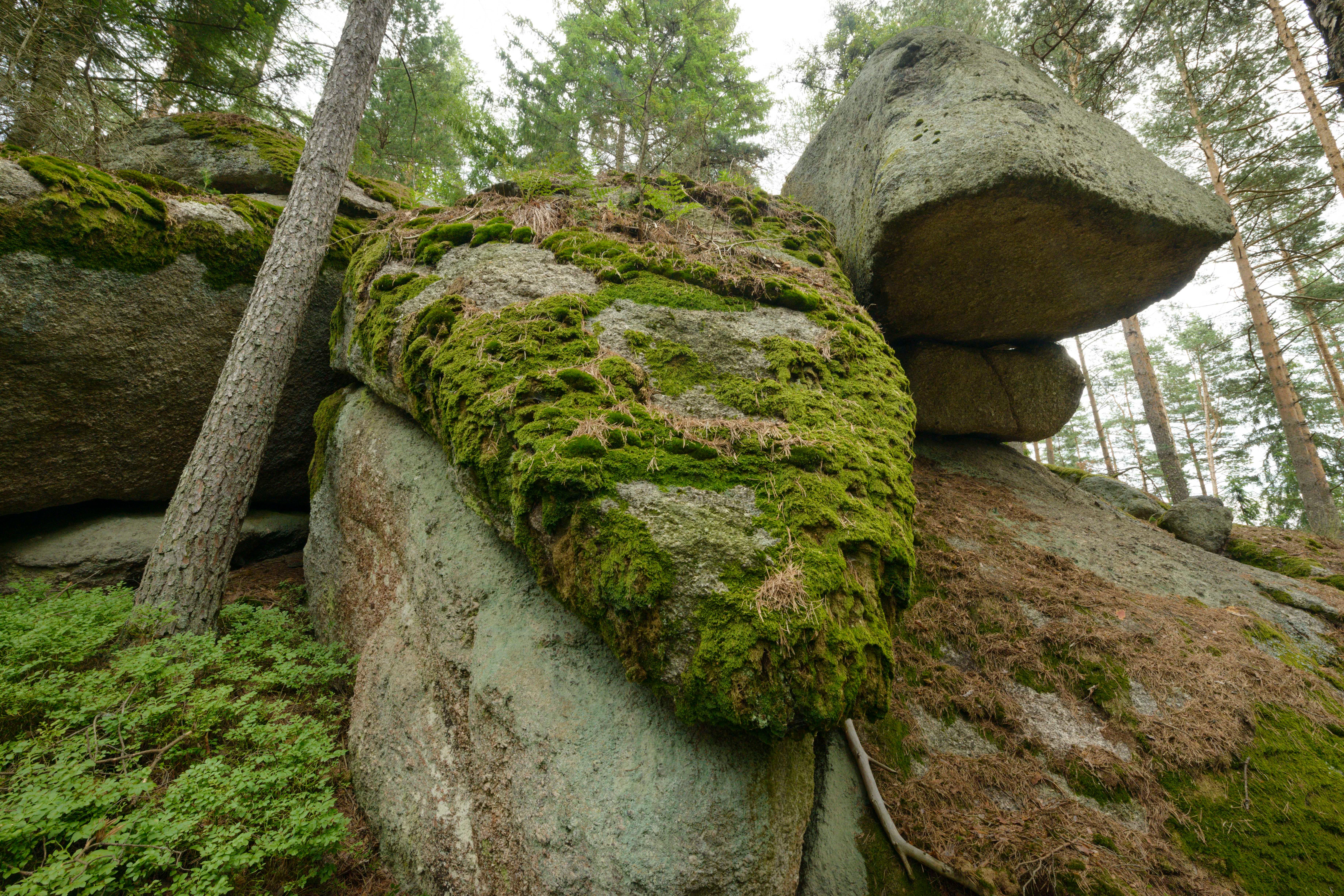 Az egyik csúcspont a Stone Archway, egy természetes gránit boltív, amely két hatalmas szikla között emelkedik. Át lehet mászni rajta, sőt át is lehet mászni rajta. A közelben található a Gombakő, amely úgy nő ki az erdő talajából, mint egy túlméretezett kalap. Északabbra található az impozáns, mintegy tizenkét méter magas gleccsermalom. A mélyedéseket nem a gleccserek, hanem a víz, a fagy és a savak hatása alakította ki évmilliók alatt.