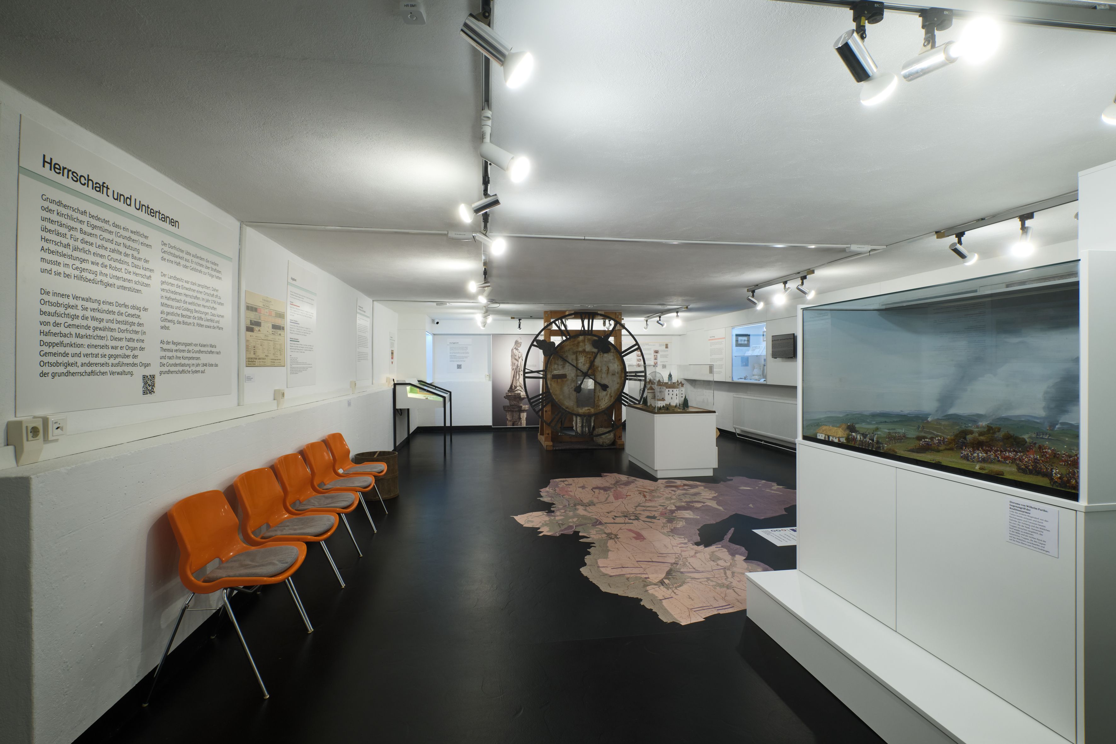 Az állandó kiállításon kívül, amely a történelmi fejlődéssel, az "uradalom és az alattvalók" kapcsolatával és a regionális történelemmel foglalkozik, a tárgyalóteremben évente változó különleges kiállítások is helyet kapnak, mint például az "Energia és erőforrás-fogyasztás".