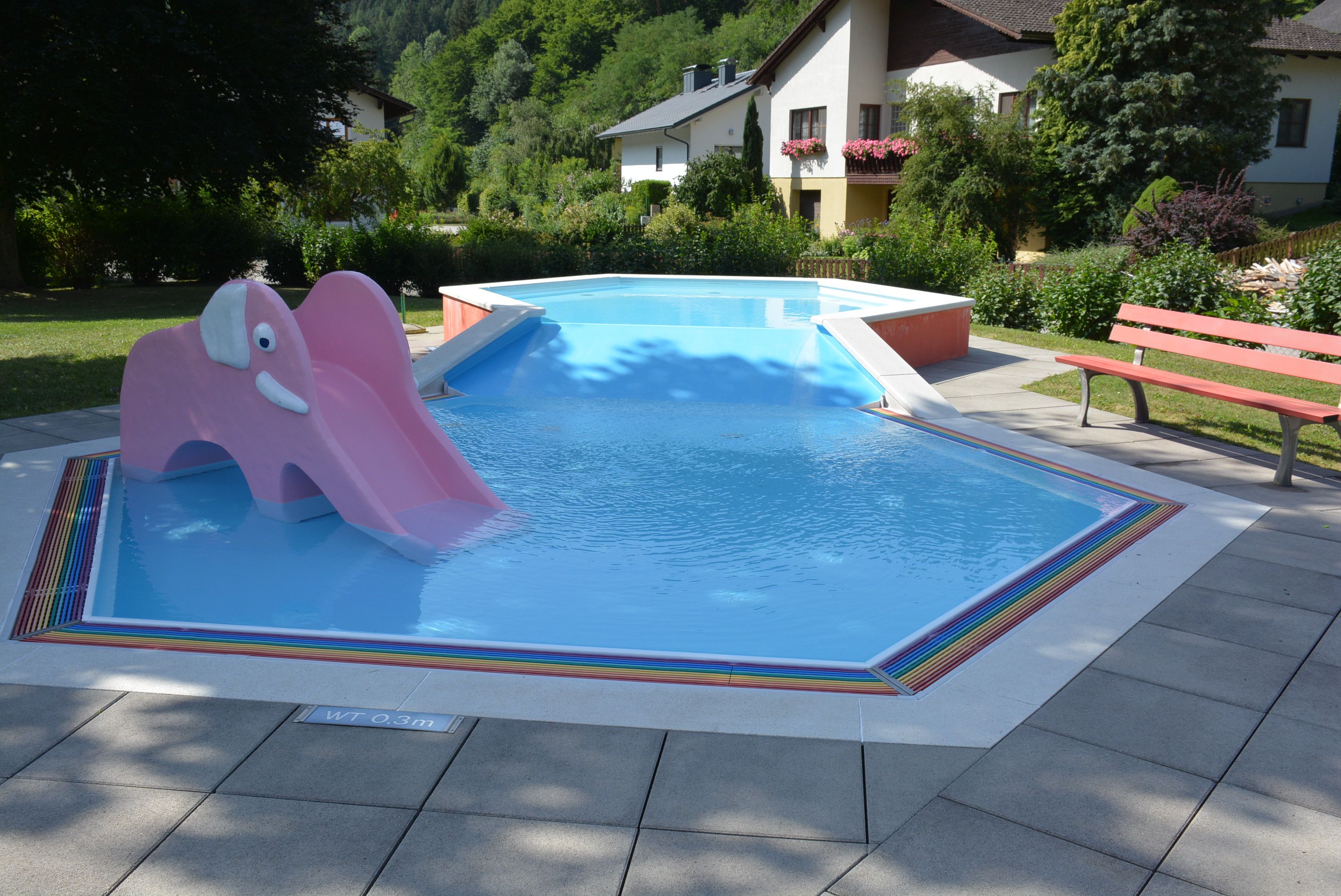 A túrázás után irány a napenergiával előmelegített szabadtéri medence, ahol tágas napozótér várja a vendégeket. Ott masszázsfúvókák és csobbanó zuhany várja Önt. Fiatalabb vendégeink számára egy gyermekpancsoló medence áll rendelkezésre összekötő csúszdával és csúszdás elefánttal. Gasztronómiai élvezeteket a medence büféjében szolgálják fel.