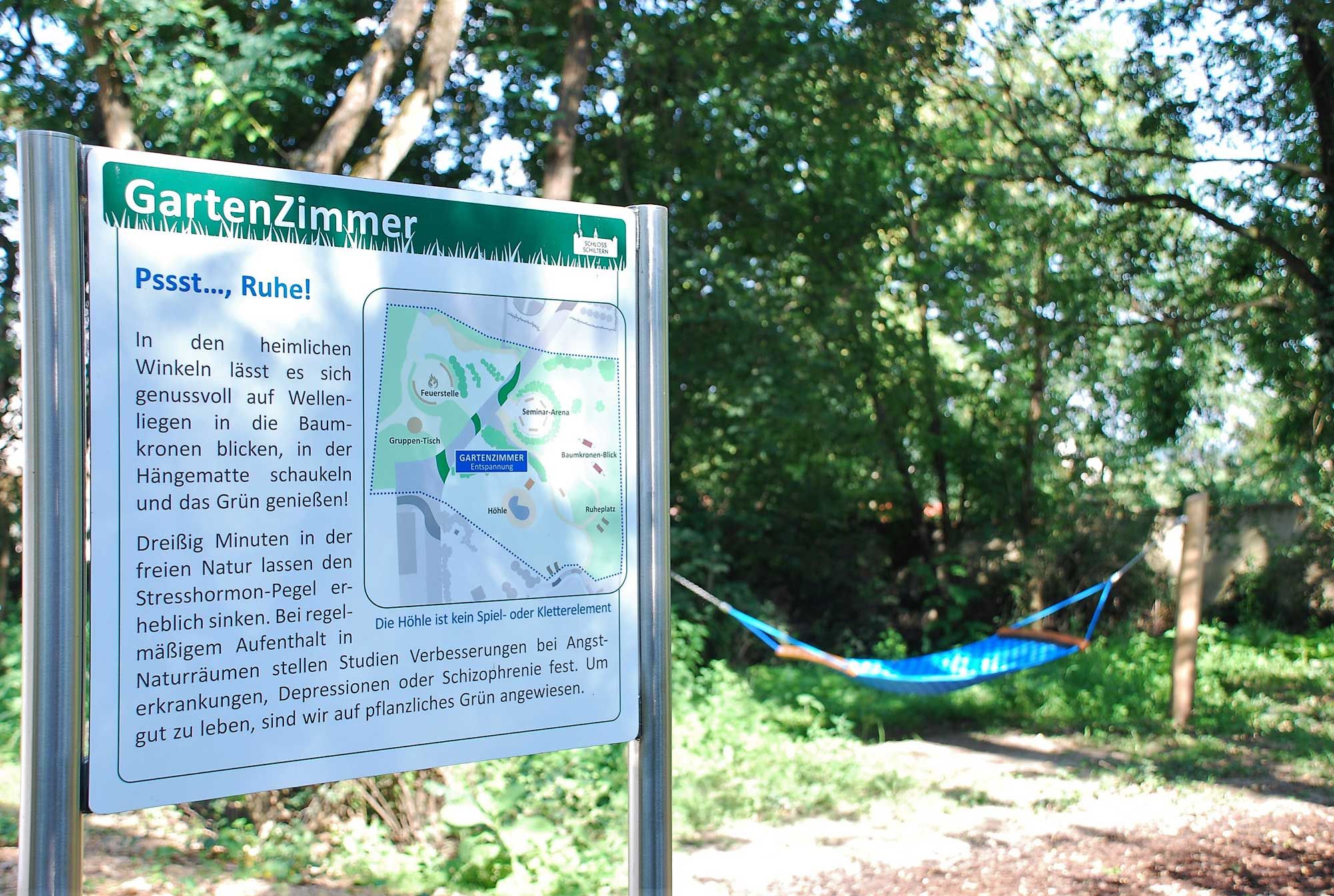 Ha mély levegőt szeretne venni és pihenni, a Schiltern-kastély parkjában megtalálja. Itt érezheti a zöld növényzet gyógyító hatását a testre és a lélekre. Míg a Schilterni Pszichoszociális Központ a mentálisan beteg embereknek segít a munka világába való visszailleszkedésben, a kastélyparkban található terápiás kert mindenki számára nyitva áll, aki nyugalomra és csendre vágyik. A kert különböző területein nemcsak pihentető zöld növényzetet és minden érzékszervre ható stimulációt talál, hanem olyan területeket is, amelyek a mozgékonyságot és a koncentrációt edzik.