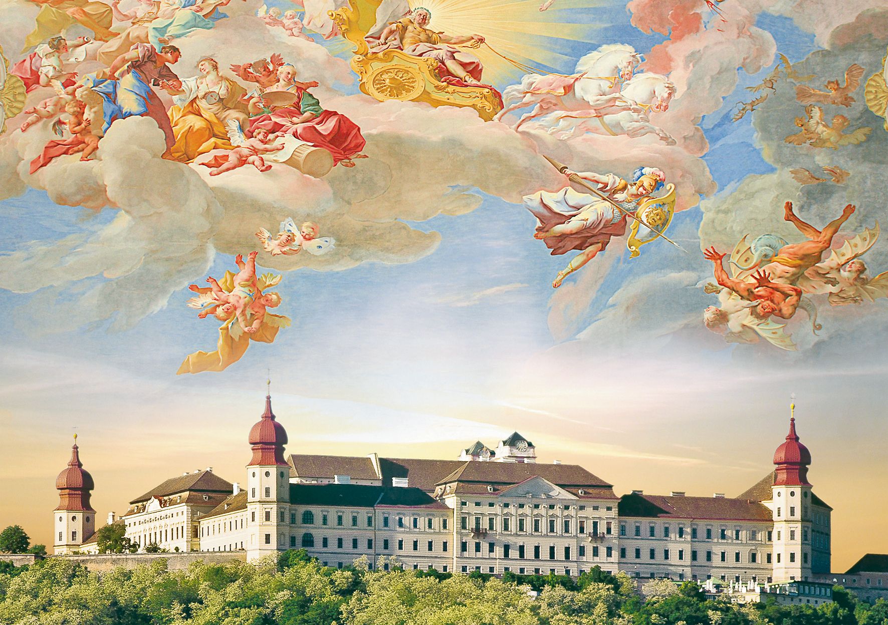 Magasztosan trónol Göttweig bencés rendi apátsága 422 m magasan a világhírű Wachau régió keleti peremén. 2000 óta az UNESCO kulturális világörökség része és ezzel nemcsak látogatók sokaságát vonzza az egész világból, hanem 42 szerzetesének köszönhetően egyben fontos szellemi központ is Alsó-Ausztria szívében. A dombtetőn elhelyezkedő apátságot Ausztria Montecassinojaként is szokták emlegetni. 1083-ban kanonok gyülekezetének alapították, akik Szent Ágoston regulája alapján éltek. 1094-ben adták át a bencés rendnek. A középkori építményekből napjainkra csak maradványok maradtak fent (az Erentrudisz kápolna 1072-ből, a régi vár, a kripta és a karzat), hiszen 1718-ban egy tűzvész pusztítását követően barokk stílusban építették újra az apátságot. Ehhez a császár építésze, Johann Lucas von Hildebrandt készítette a terveket, melyeket 1720-ban, Gottfried Bessel apát idején kezdtek el kivitelezni és végül kétharmad részben meg is valósítottak. Kitűnő példája a barokk pompának a gyönyörű Császár-lépcsője a császári lakrész múzeumában Paul Trogers freskójával 1739-ből, melyet Európa egyik legszebb és legnagyobb barokk lépcsőházaként tartanak számon. A szomszédos hercegi és császári termekben található műalkotásokból évente időszakos kiállításokat mutatnak be. Az apátság bejáratától az udvarig pedig a „Klosterleben” elnevezésű állandó kiállítás kíséri a látogatót, mely a göttweigi szerzetesek életéről és munkásságáról tájékoztat. Az érdeklődők egyszerű, kolostori körülmények között akár meg is szállhatnak itt. 2020 májusától még 10 vendégszoba áll majd rendelkezésre részben álomszép kilátással a Wachau vidékére. Kulináris élményekről pedig az apátság étterme, a Stiftsrestaurant Göttweig gondoskodik helyi finomságokkal és az apátság saját boraival. A kilátóterasz gyönyörű panorámával rendelkezik a Duna-völgye és a Wachau messzeségeibe.