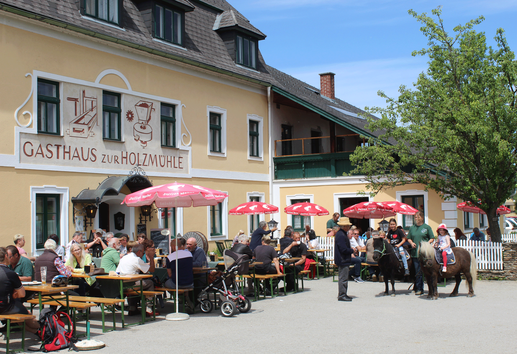A Holzmühle pónifarmon festői környezetben a lovakkal kapcsolatos szórakozást talál: pónilovaglás, kezdő tanfolyamok, terep- és tereplovaglás, kocsikázás, pónitenyésztés, minifarm, szamaras túrák és még sok más. A programot a www.ponyhof-holzmuehle.at honlapon találja, vagy hívja a +43 664 5077371-es telefonszámot.
