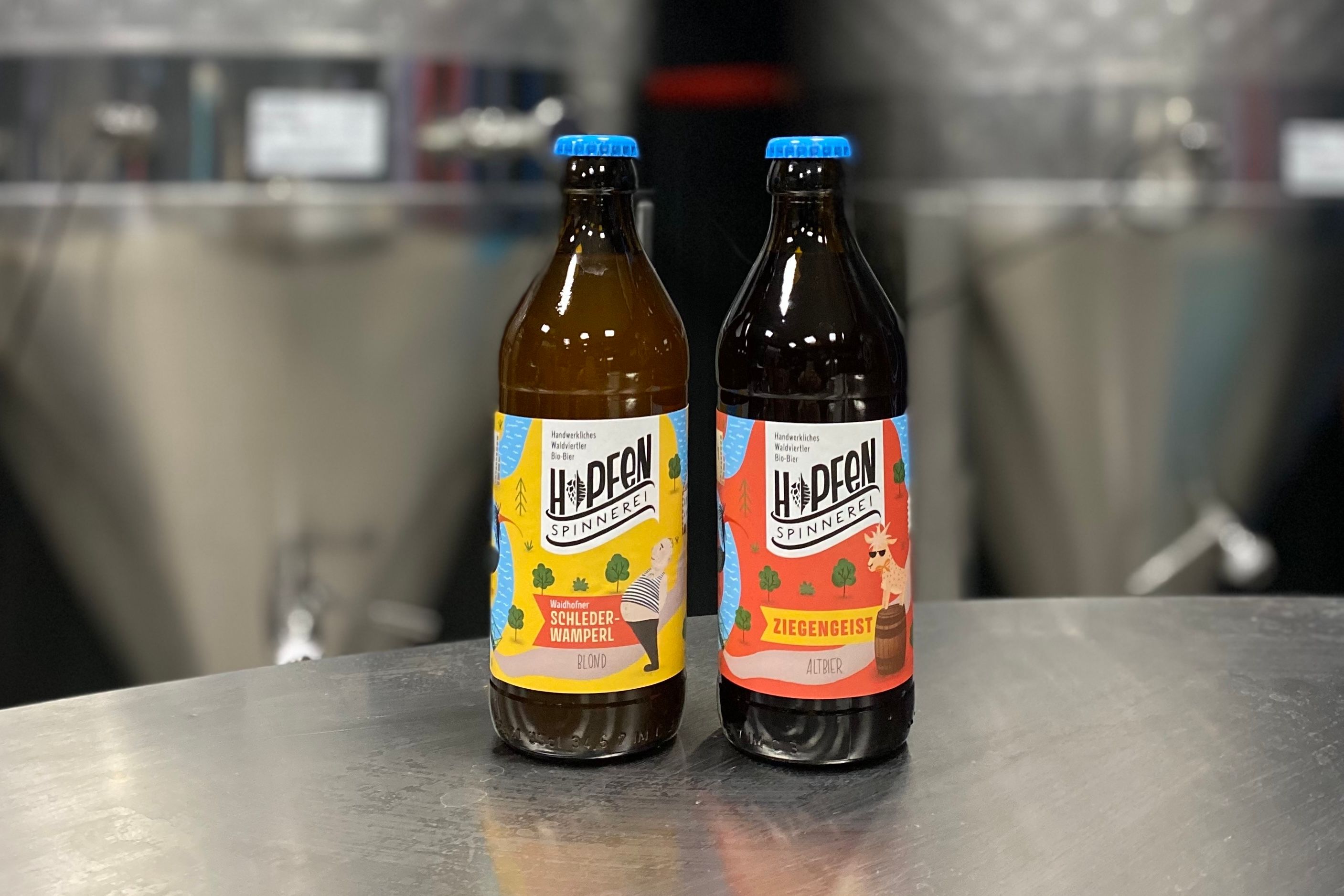 Természetesen a 2020-as világjárvány gyorsan megváltoztatta a helyzetet. Ugyanilyen gyorsan eldőlt azonban, hogy a világjárvány miatti leállást produktívan kell kihasználni: Hopfenspinnerei goes Waldviertel! Evelyn Bäck és Gwaël Gauthier Waidhofen an der Thaya-ban egy üresen álló malmot vásároltak, és sörfőzésre alakították át. Az új helyszínen 2021 ősze óta lehet sörfőzni, és 2022 nyara óta működik a Thayaufer történelmi együttesben az értékesítési és kóstolóhely is. Nyitvatartási időben a sör palackozottan elvihető, illetve hordóból kóstolható. A sörkínálat biominősítéssel rendelkezik, és a "Waidhofner Schlederwamperl" (szőke) és a "Ziegengeist" (Altbier), a jól ismert, többszörösen díjazott Hopfenspinnerei szabvány két változata is megtalálható benne. A választékot a rendszertelenül kínált különleges sörök egészítik ki. A Waldviertelben a népszerű házi sörfőző műhelyek természetesen továbbra is fennmaradnak - erre a célra külön műhelyterületet alakítottak ki az újonnan átalakított sörfőzde épületében. A sörfőzde meghatározott időpontokban látogatható. Figyelem: Korlátozott a résztvevők száma - a legjobb, ha előzetesen online foglalnak helyet!