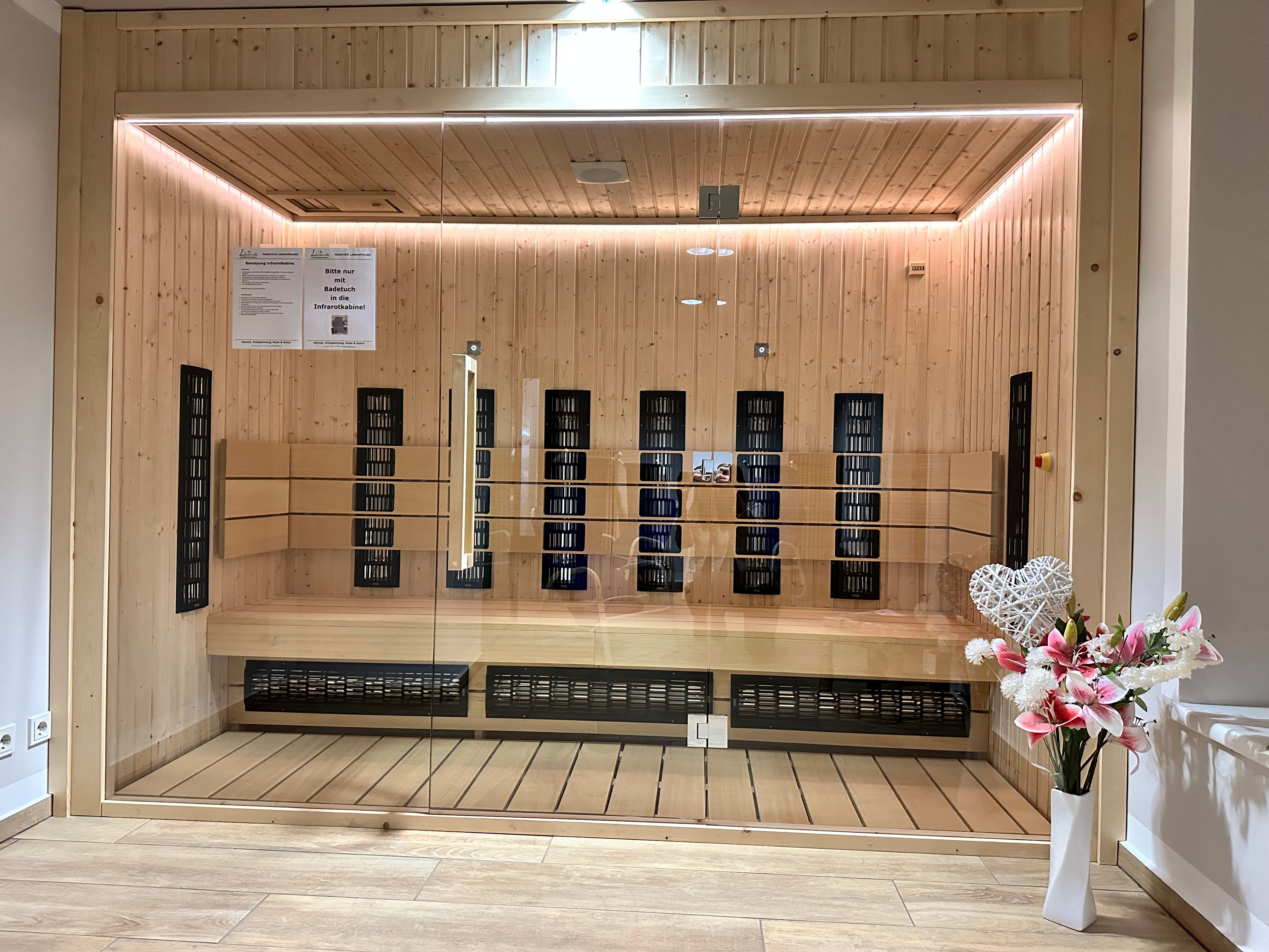 You can also visit our wellness area with log cabin sauna, infrared and steam cabin, indoor pool and outdoor whirlpool as a day guest. In fine weather, the sunbathing lawn invites you to linger and soak up the sun, our in-house masseur Christian will pamper you with his well-known massages on request.