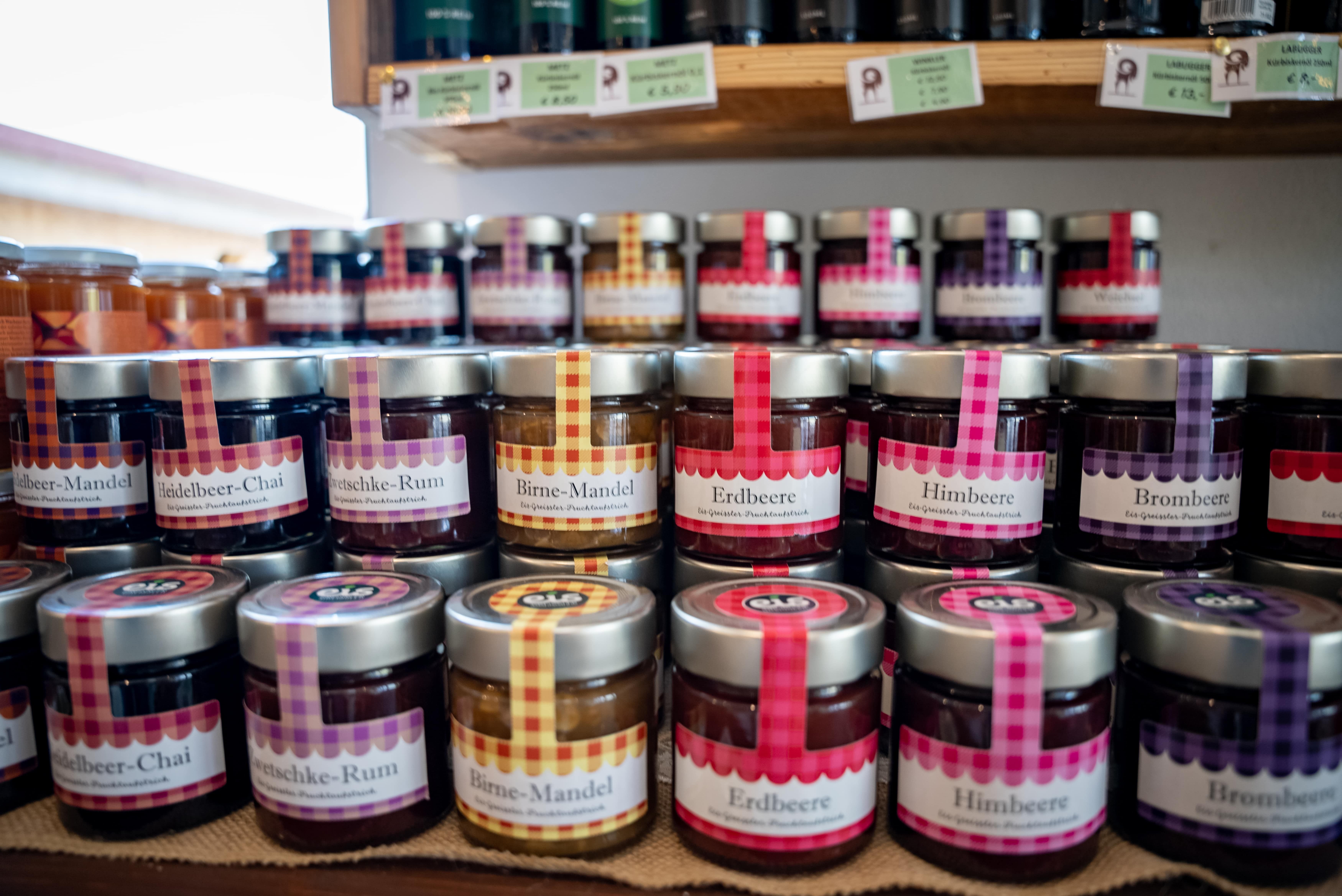 A finom friss kecskesajt-választék a tanyaboltbana régióból és egész Ausztriából származó színes választék mellett kapható. Van egy egyedülálló "Goaß mozi" is: két nagy ablakon keresztül nézheti a kecskéket, amint játszanak, esznek és hűsölnek.