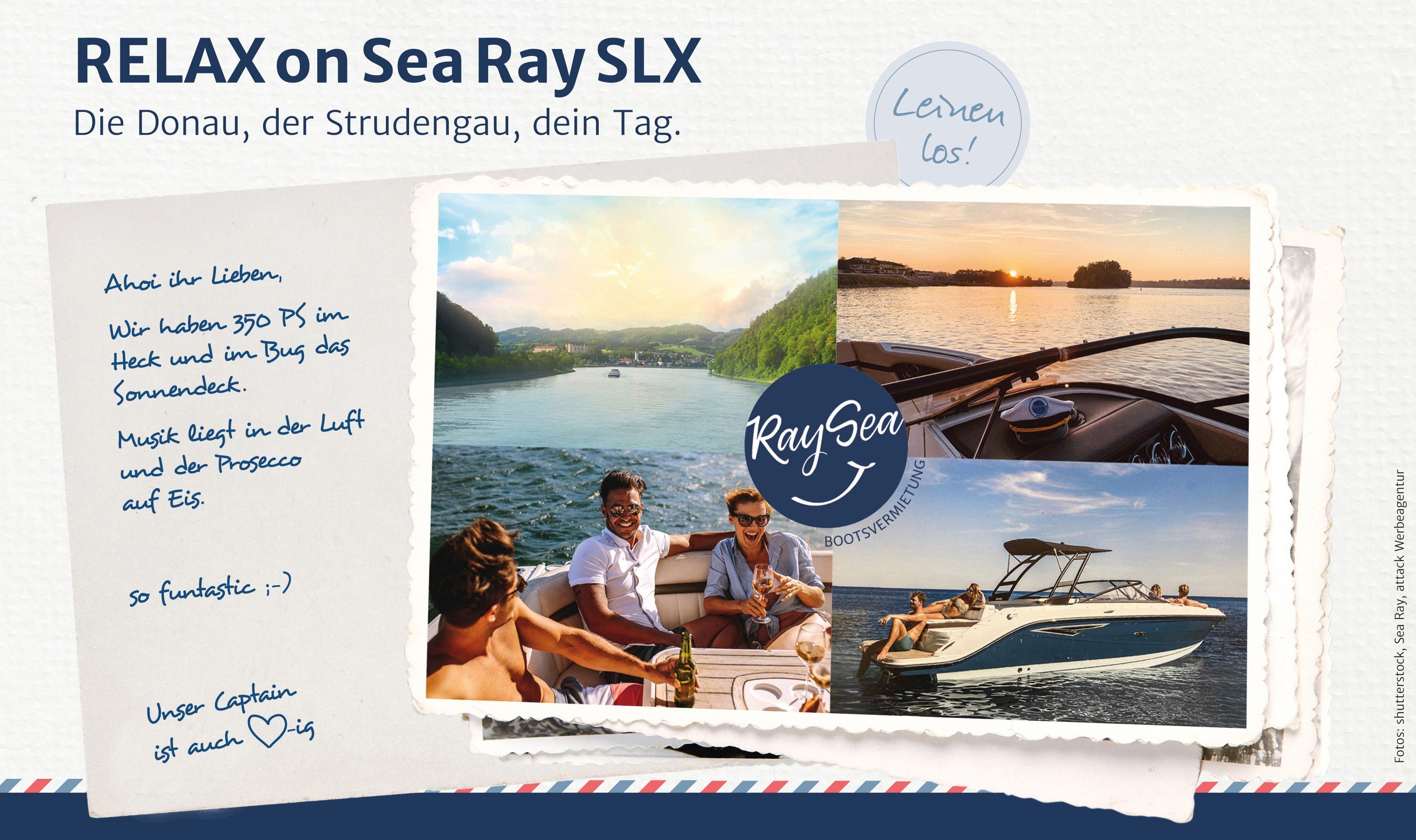 Hajó a folyón! Az elegáns SeaRay 250 SLX 350 lóerővel várja Önt a hátsó részen és a napozóteraszon az orrban. A hangulathoz illő zene, valamint a finom wachaui borok, amelyeket a Strudengauban kóstolhat meg.