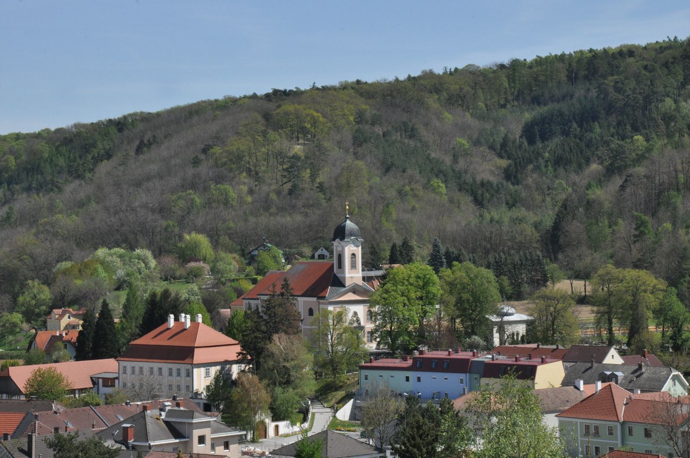 A jelenlegi plébániatemplomot 1803 és 1806 között Johann Amann (1765-1834) bécsi udvari építész építtette. Amannt a 19. század első negyedének józan klasszicista építészetének egyik fő képviselőjeként tartják számon Ausztriában.
