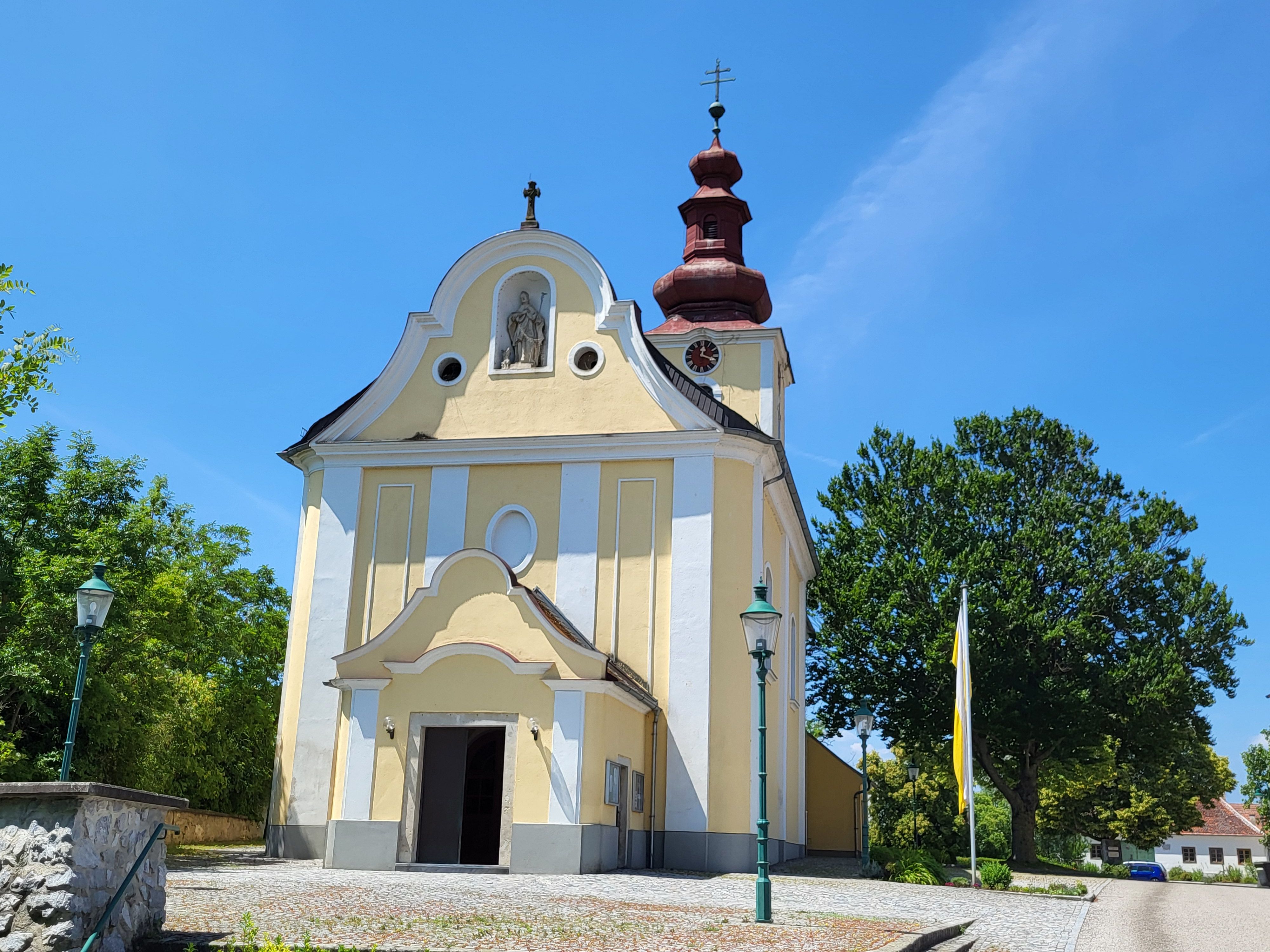A barokk templomhajót 1761-ben vagy 1774-ben építették hozzá, a déli kápolna 1679-ből származik, a belső teret pedig három, az építés idejéből származó rokokó oltár jellemzi. A templomot 1930-ban, 1969-ben és 1985-ben átfogóan restaurálták. A templom a bécsi érsekség "Unter dem Manhartsberg" vikariátusához tartozó Hadersdorfi dékáni kerület része, és műemlékvédelem alatt áll - a történelem, a hit és a művészet helyszíne.