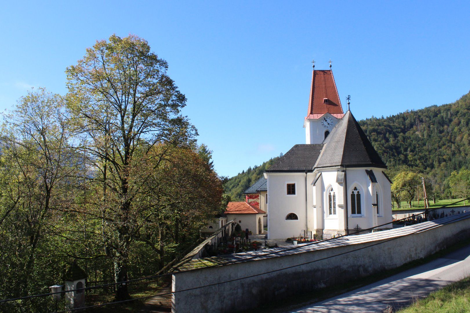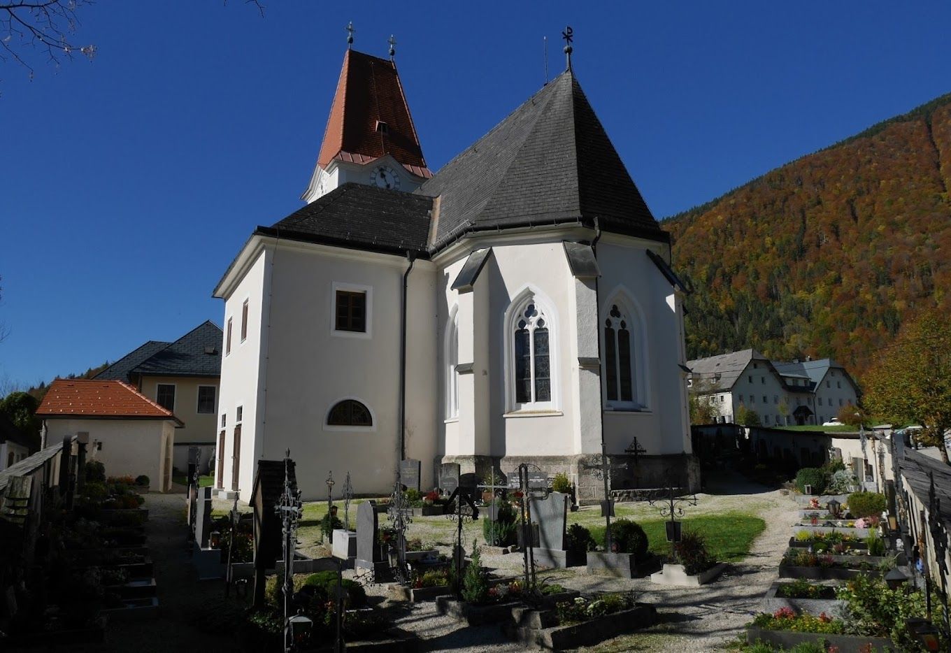 Az 1530-ban késő gótikus stílusban épült Szent György plébániatemplom gyönyörű gótikus bordás boltozattal rendelkezik. A templom, az iskola és az egykori kocsma a Bauernboden és a Friesling közötti sziklán fekszik, ahonnan gyönyörű kilátás nyílik a Königsbergre, a Voralpe és az Ybbstalra.