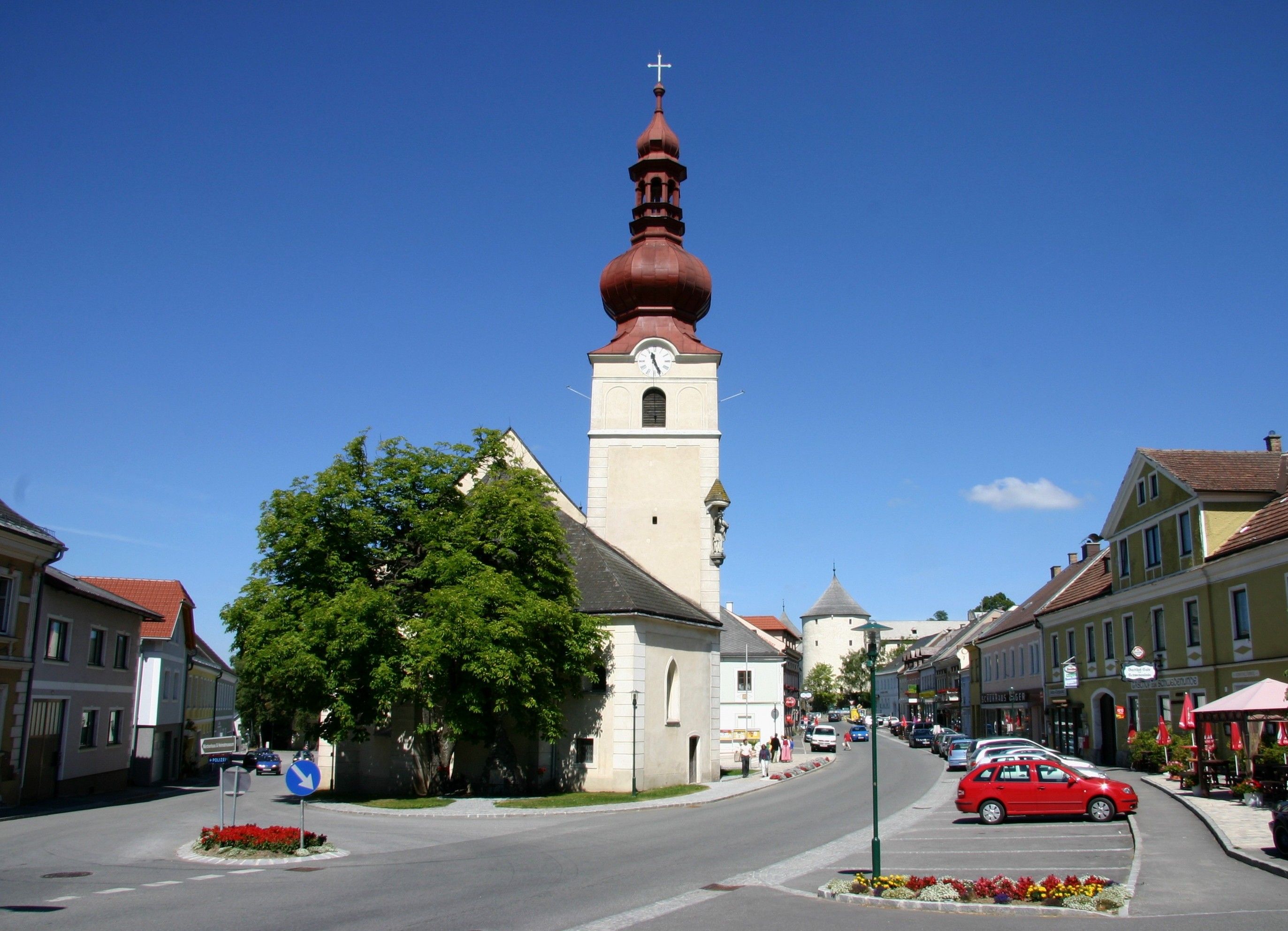 A Szent Hippolütosznak szentelt plébániatemplom, amelyet először 1544-ben említenek a plébános kinevezésével együtt, a piactéren kívül, az úgynevezett Pöltenbergen állt. A romlás miatt 1744-ben ebben a templomban megszűntek az istentiszteletek. A presbitériumot 1870-ben temetőkápolnaként használták, miután a templomkertet a régi templom helyén alakították ki.