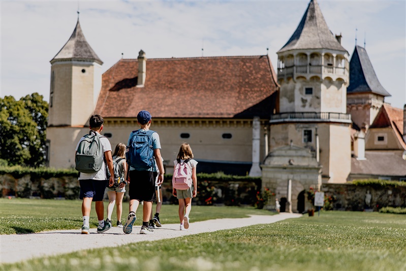A romantika a kastélypark kertjeinek fő motívuma, ahol négy különböző tematikus kert várja a látogatókat. A szerelem pedig szinte még a levegőben is terjeng itt, hiszen 2012-ben egy látványrózsakertet hoztak létre a legendás brit rózsatermesztő, David Austin rózsáiból, akinek a kert kialakítása is köszönhető. Ez a rózsakert egyedülálló Ausztriában.
