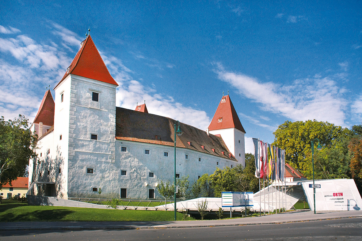 A schlossORTH látogatóközpont a nemzeti parkba érkezők első számú megállóhelye, amely újszerű szemléletet és átfogó információkat kínál. A „Tor zur Au“, vagyis „Az ártéri kapu“ mottó jegyében a kiállítás négy teremben, különböző nézőpontokból mutatja be a nemzeti park lenyűgöző világát. A „DonAUräume” című multimédiás kiállítás 2025. június végéig lesz látható. Ezt követően átalakításra és felújításra kerül. A nemzeti park történetét és jelenlegi helyzetét egyórás tárlatvezetés keretében lehet megismerni (szombaton, vasárnap és ünnepnapokon). Időszakos kiállítások láthatók a kilátótorony termeiben, amelyek az udvarban található fémlépcsőn keresztül érhetők el. A 2025-ös évben például a „Meglessük a természetet” című kiállítás várja az érdeklődőket. A kilátóból csodás a kilátás nyílik a kastély közvetlen környezetére. A felső szinten azokat a vadállatokat mutatják be, amelyek a kastélyban vagy annak közelében élnek: fehér gólya, csóka, vörös vércse és több denevérfaj. Élő web-kamera segítségével beleshetünk a fészkekbe és megnézhetjük, hogy éppen mit csinálnak a madarak.