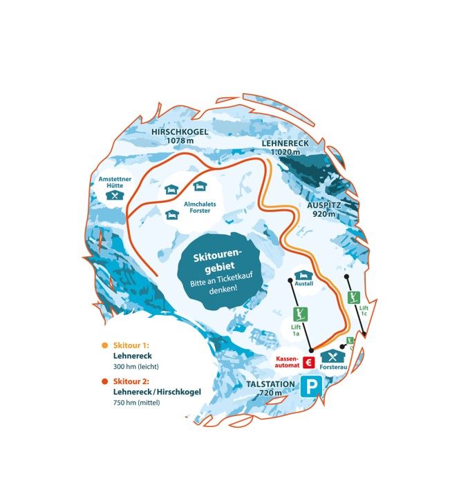 A sítúrázók területén a Forsteralm megmutatja természetes oldalát. A Lehnereckre vezető túra élvezeti útvonalnak számít, míg a Hirschkogellel való kombináció már mintegy 750 méteres magasságot tesz meg - ideális azok számára, akik meg akarják erőltetni magukat.