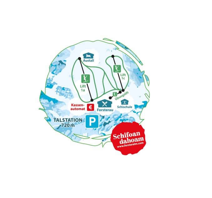 "Schifoan dahoam" - a Forsteralm családi síterep a rövid bejárható utak, a széles pályák és a tökéletes feltételek a gyermekek, a kezdők és az élvezetes síelők számára. Ideális néhány gyors kanyar megtételére és a tél teljes kiélvezésére.