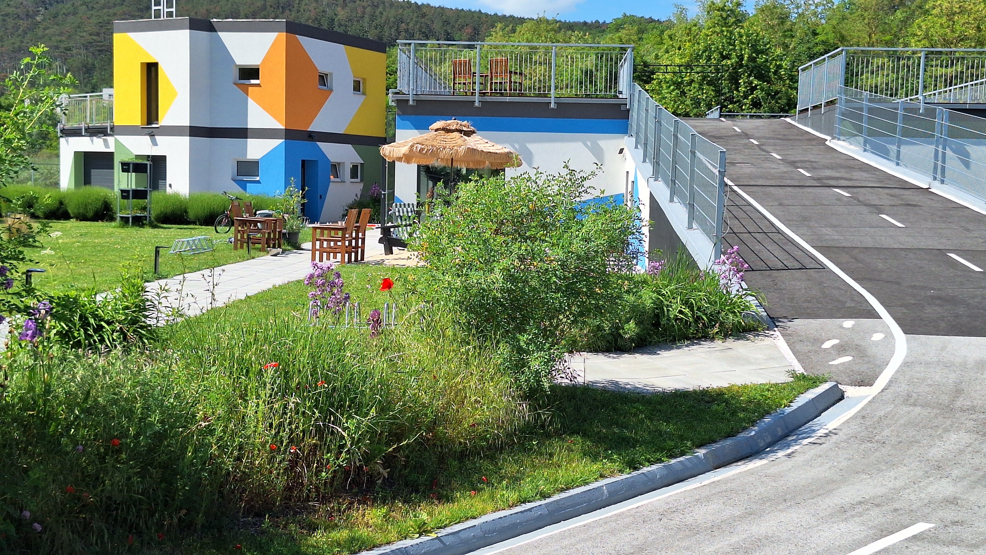 Fedezze fel a gyönyörűen kialakított, zöldövezetben lévő pihenőhelyet, közvetlenül a kerékpárút mellett és a "Berndorf-Fabrik" vasútállomással szemben.
